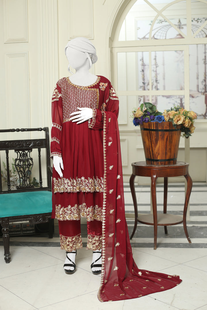 Chiffon fabric; Stitched 3-Piece Suits